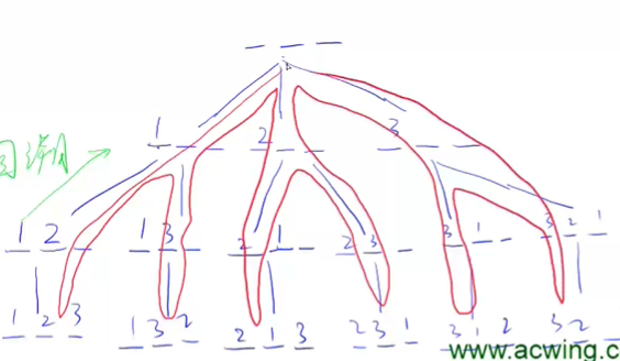 把搜索顺序看成一棵树,每个叶结点就是一种全排列